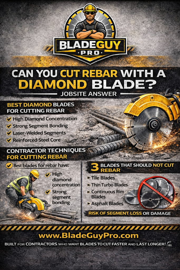 Diamond blades are designed primarily for concrete and masonry, but many professional blades are engineered to cut reinforced concrete, which includes steel rebar.