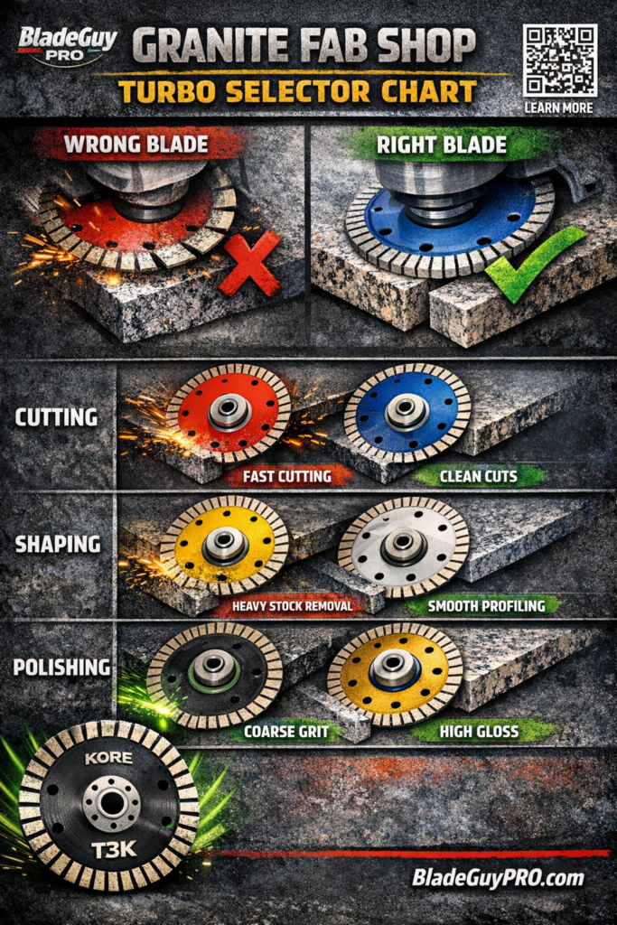 In a granite fab shop, blade choice changes everything. The right turbo blade helps you cut faster, shape better, and finish cleaner. The wrong blade burns time, money, and material.