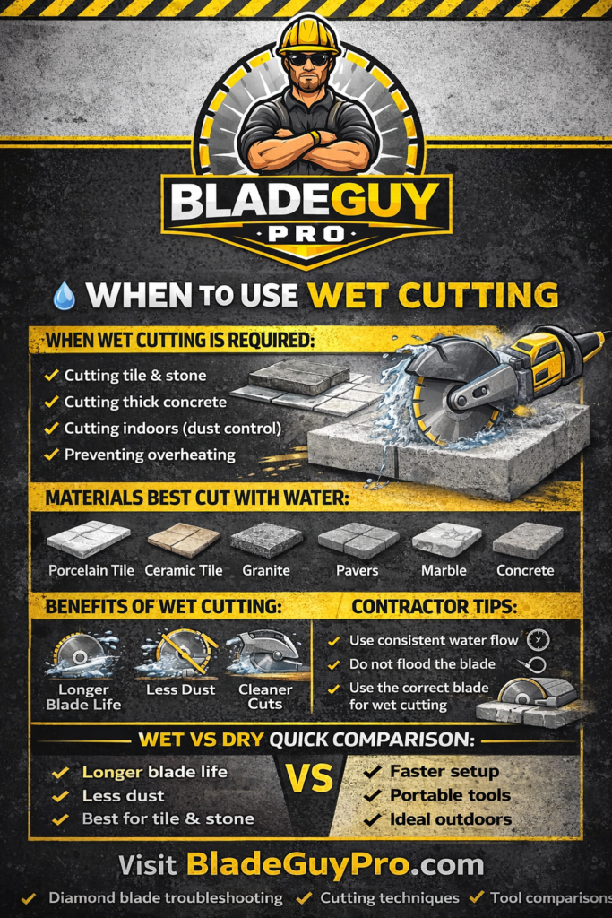 For contractors who want longer blade life and better cutting results, understanding when to use wet cutting can make a big difference on the jobsite.